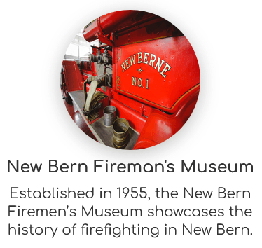 Established in 1955, the New Bern Firemen's Museum showcases the history of firefighting in New Bern.